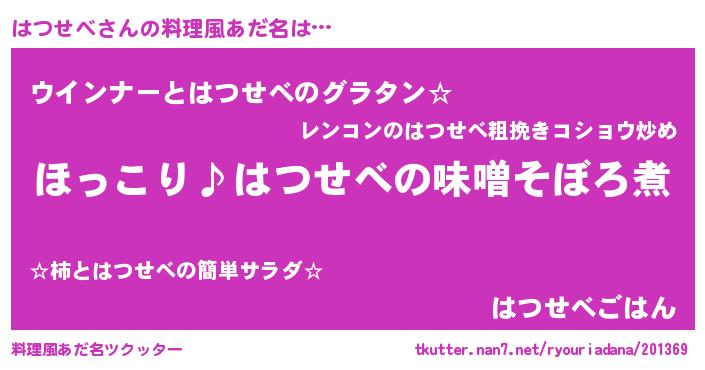 | 意味不明あだ名 | 『ペロリンはつせべ』『自称はつせべ』 |