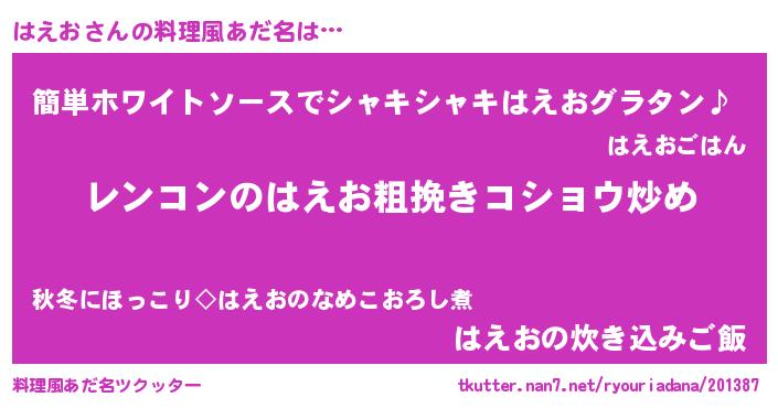 | 意味不明あだ名 | 『自称はえお』『とにかく怪しいはえお』 |