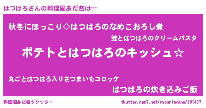 | ヒーロー風カッコイイあだ名 | 『幻影騎士ハツ』『天空の使者はつはろ』 |