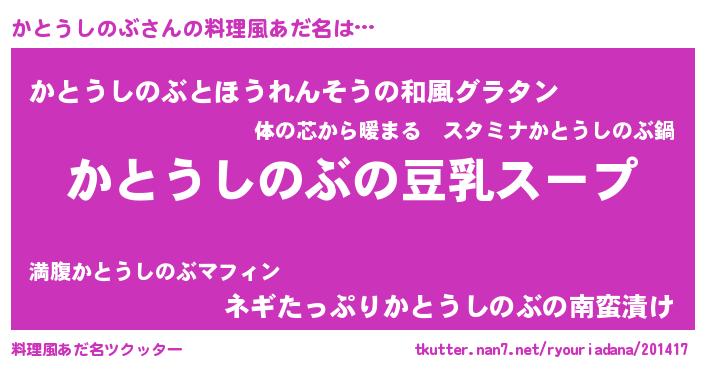 | ピコ太郎風あだ名 | 『カト十郎』『カコ次郎』『ピカ次郎』 |