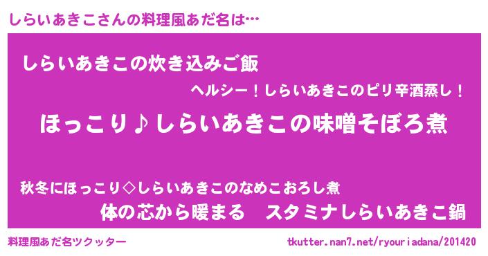 | 意味不明あだ名 | 『ペロリンしらいあきこ』 |