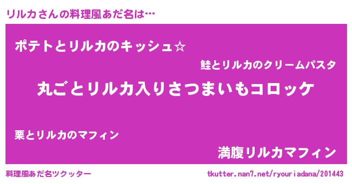 | ヘコむあだ名 | 『リルを』『リルカ(爆)』『酢こんぶ』 |