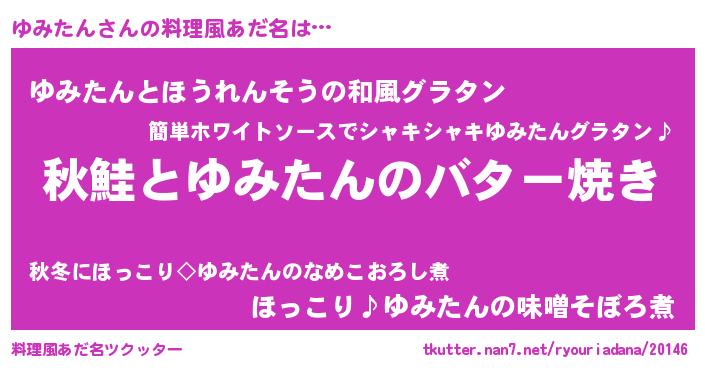 | 意味不明あだ名 | 『永久保存ゆみたん』『ペロリンゆみたん』 |