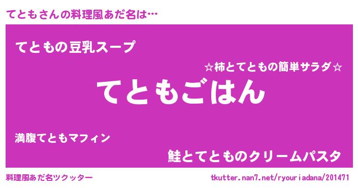 | 胡散臭い通販商品みたいなあだ名 | 『信頼と実績のサプリメント…その名も「てとも」』 |