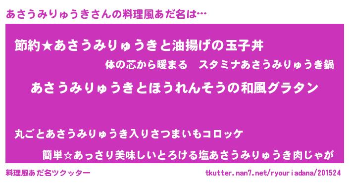 | 肩書あだ名 | 『あさうみりゅうき少将』 |