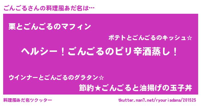 | 男性向けラノベタイトル風あだ名 | 『Re:ごんごるから始める異世界生活』 |