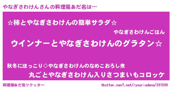 | 男性向けラノベタイトル風あだ名 | 『やはりやなぎさわけんの青春ラブコメはまちがっている 』 |