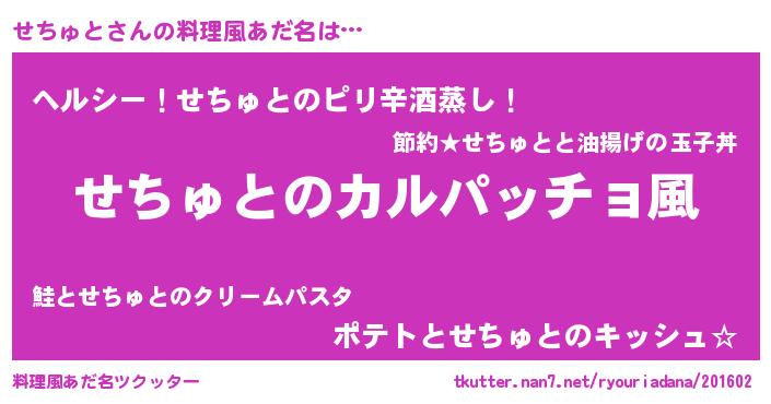 | 男性向けラノベタイトル風あだ名 | 『魔弾の王とせちゅと』『せちゅとの憂鬱』 |
