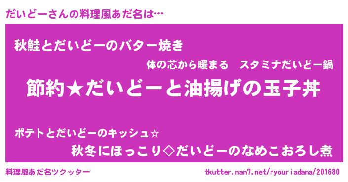 | 胡散臭い通販商品みたいなあだ名 | 『モテモテ間違いなし水晶球…その名も「だいどー」』 |