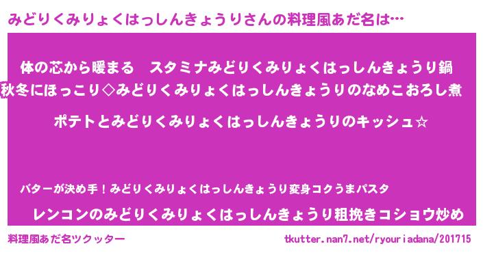 | 意味不明あだ名 | 『とにかく怪しいみどりくみりょくはっしんきょうり』 |
