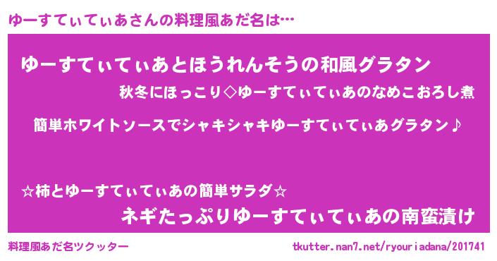 | 男性向けラノベタイトル風あだ名 | 『ゆーすてぃてぃあの嫁は女の子じゃないと思った?』 |