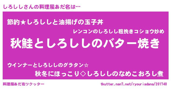 | ヘコむあだ名 | 『しろしし(苦笑)』『しろにゅー』 |
