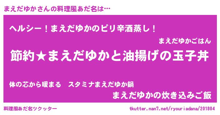 | 意味不明あだ名 | 『ペロリンまえだゆか』『自称まえだゆか』 |