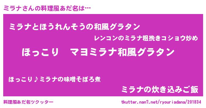 | 意味不明あだ名 | 『住所不定無職ミラナ(8歳)』『自称ミラナ』 |