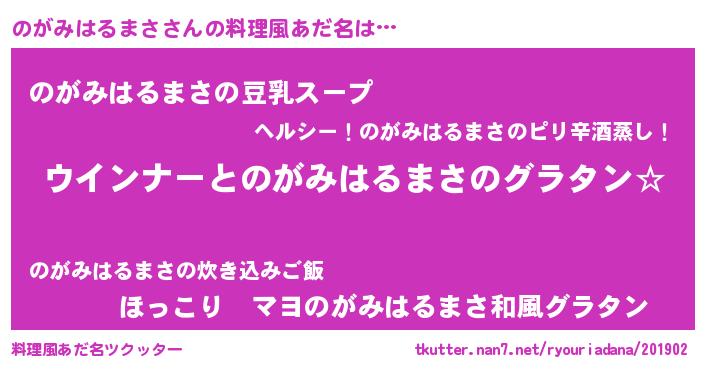 | 欧米人風あだ名 | 『のがみはるまさクリステル』 |