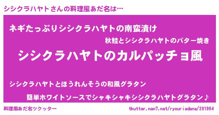 | 欧米人風あだ名 | 『ダレノガレシシクラハヤト』 |