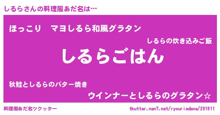 | 意味不明あだ名 | 『めかぶ科しるら属』『永久保存しるら』 |