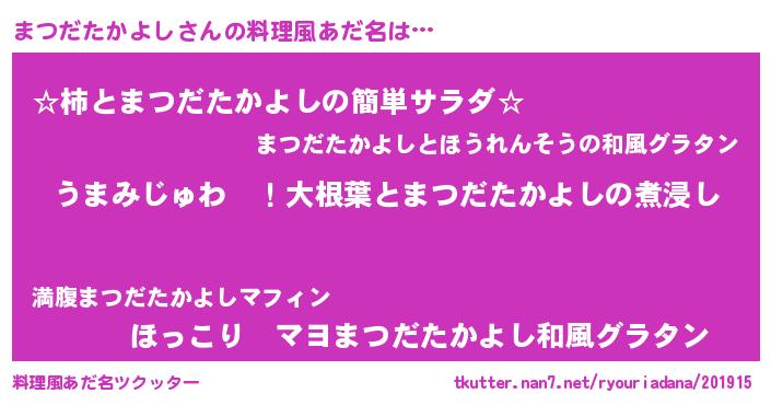 | 意味不明あだ名 | 『まつだたかよしフォーエバー』 |