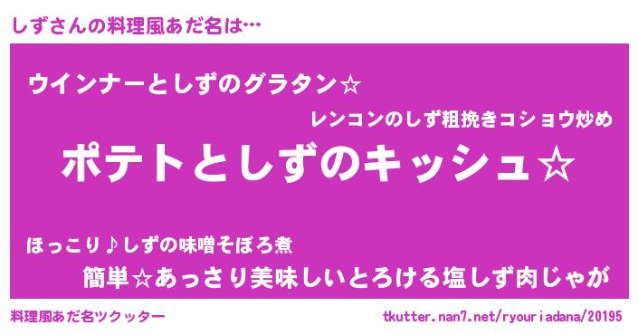 | 胡散臭い通販商品みたいなあだ名 | 『伝統あるサプリメント…その名も「しず」』 |