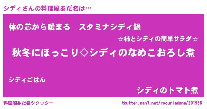 | 男性向けラノベタイトル風あだ名 | 『シディに滅ぼされるだけの簡単なお仕事です』 |