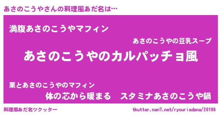 | ピコ太郎風あだ名 | 『ピコア郎』『ピア一郎』『アサ八郎』 |