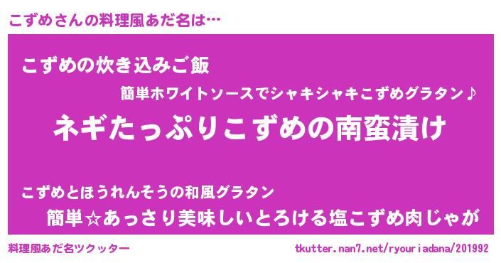 | 欧米人風あだ名 | 『マイケルこずめ』『ダルビッシュこずめ』 |