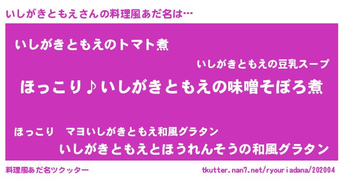 | ピコ太郎風あだ名 | 『イコ十郎』『イイ太郎』『イシ十郎』 |