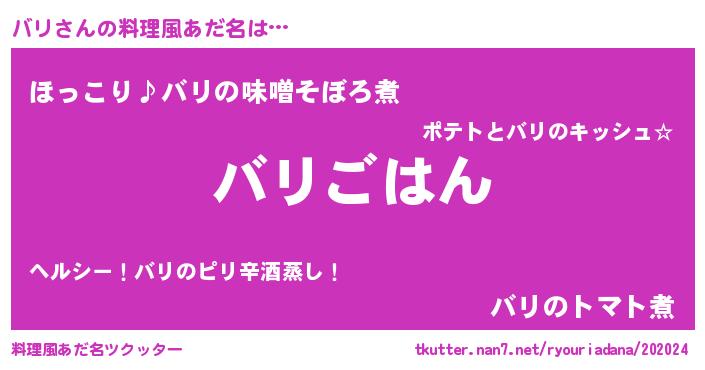 | 男性向けラノベタイトル風あだ名 | 『バリスレイヤー』『バリの憂鬱』 |