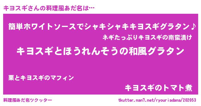 | 意味不明あだ名 | 『つくし科キヨスギ属』『自称キヨスギ』 |