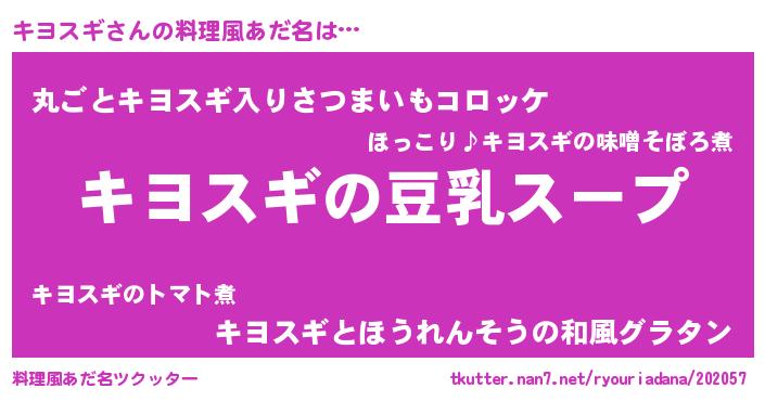 | ピコ太郎風あだ名 | 『キヨ八郎』『キコ六郎』『キキ太郎』 |