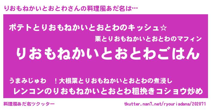 | ポケモン風あだ名 | 『リオキング』『ヒリオモネカイトオトワ』 |
