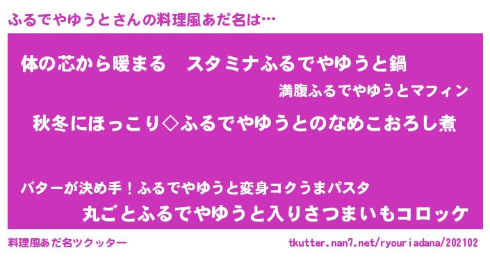 | 男性向けラノベタイトル風あだ名 | 『ふるでやゆうとに滅ぼされるだけの簡単なお仕事です』 |