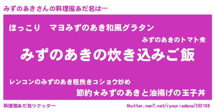 | 欧米人風あだ名 | 『みずのあき・ステッグマイヤー』 |