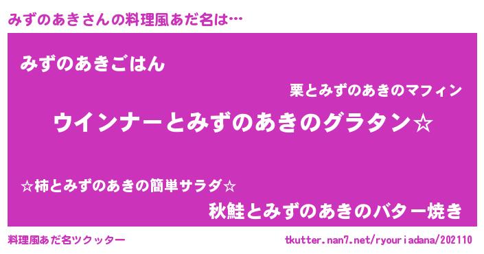 | ヒーロー風カッコイイあだ名 | 『ウルトラみずのあきマン』 |
