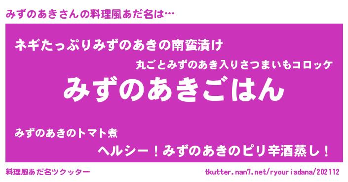 | 胡散臭い通販商品みたいなあだ名 | 『必ず成功する水晶球…その名も「みずのあき」』 |