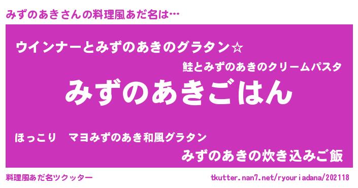 | ヒーロー風カッコイイあだ名 | 『ウルトラみずのあきマン』 |