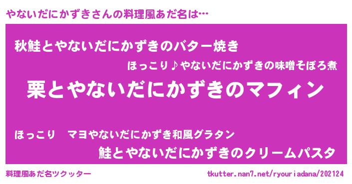 | 男性向けラノベタイトル風あだ名 | 『はたらくやないだにかずきさま!』 |