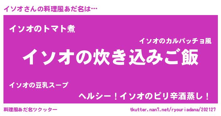 | 男性向けラノベタイトル風あだ名 | 『うちのイソオが世界を掌握している!』 |