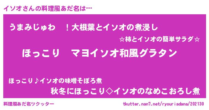 | 男性向けラノベタイトル風あだ名 | 『この素晴らしい世界にイソオを!』 |