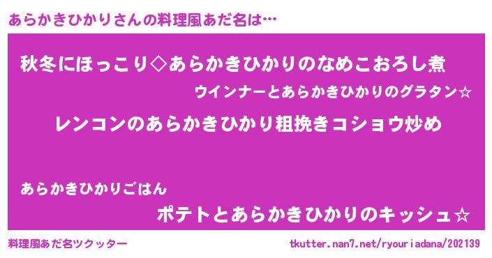 | 意味不明あだ名 | 『自称あらかきひかり』 |
