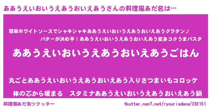 | 男性向けラノベタイトル風あだ名 | 『アアウエイオイウエアウオイエアウスレイヤー』 |
