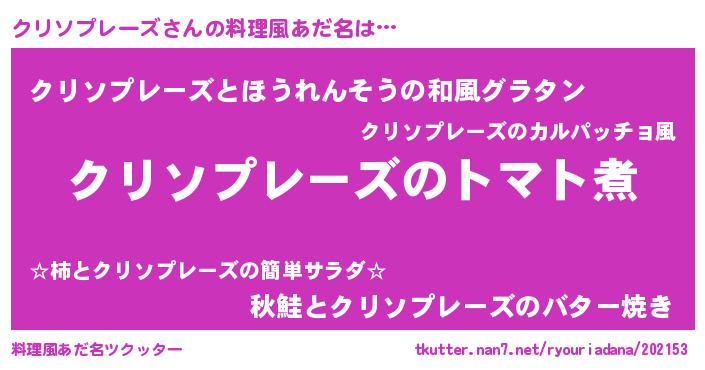 | ヘコむあだ名 | 『クリソプレーズ(笑)』『クリっちょ』 |