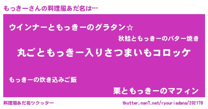 | 意味不明あだ名 | 『住所不定無職もっきー(12歳)』 |