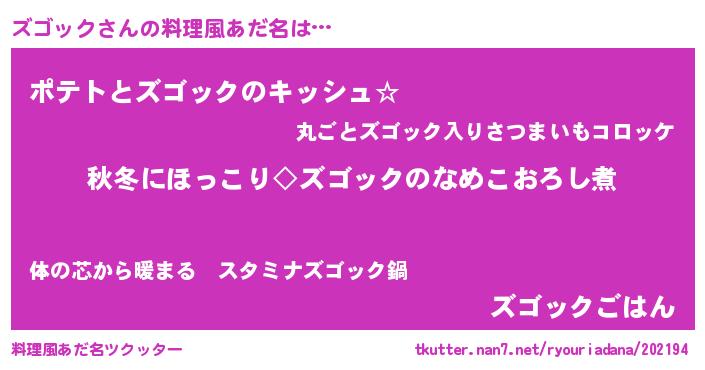 | ポケモン風あだ名 | 『ズゴゴンZ』『ヒズゴック』 |