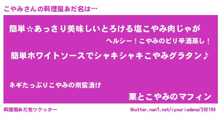 | 胡散臭い通販商品みたいなあだ名 | 『全米が絶賛したサプリメント…その名も「こやみ」』 |