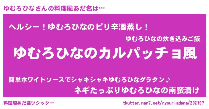 | ヒーロー風カッコイイあだ名 | 『仮面ユムダー』『究極戦士ユムロヒナ』 |