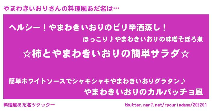| 意味不明あだ名 | 『自称やまわきいおり』 |