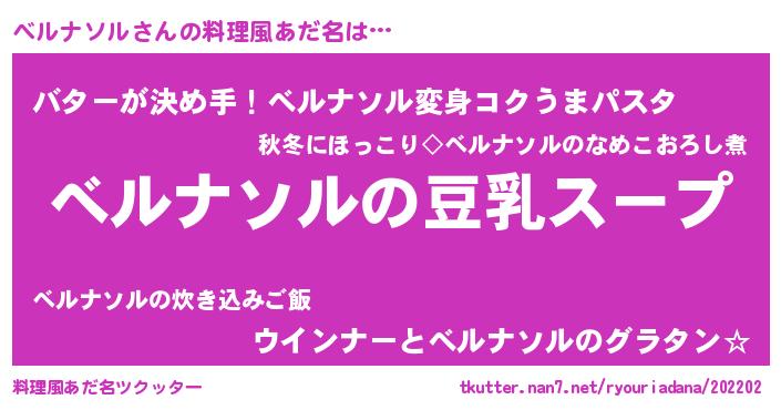 | 女子向けラノベタイトル風あだ名 | 『べルナソルは平凡を望む』 |