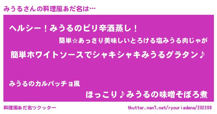 | ヒーロー風カッコイイあだ名 | 『炎刃騎士ミウ』『究極戦士ミウル』 |