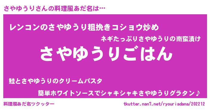| 男性向けラノベタイトル風あだ名 | 『サヤユウリスレイヤー』 |